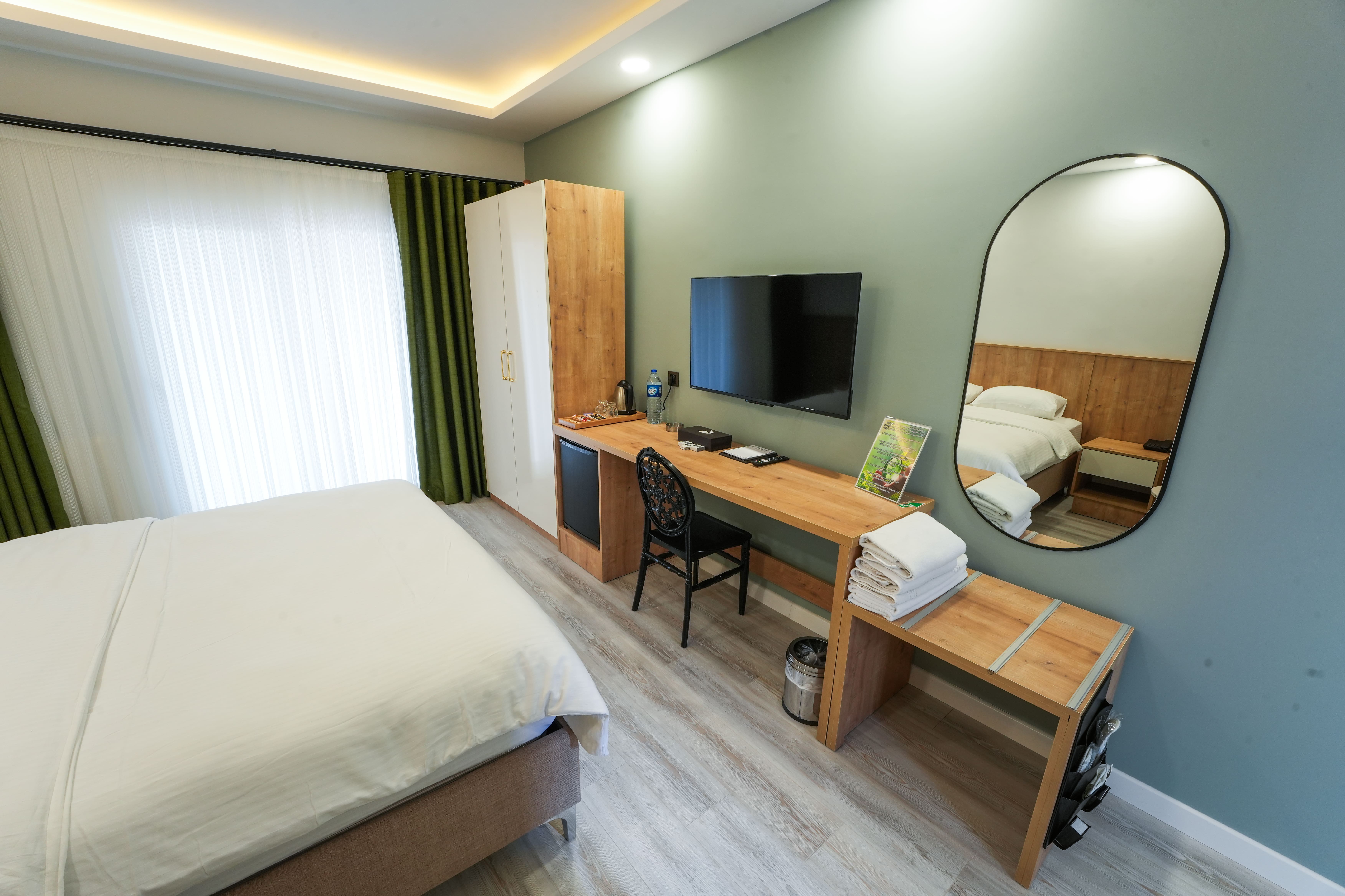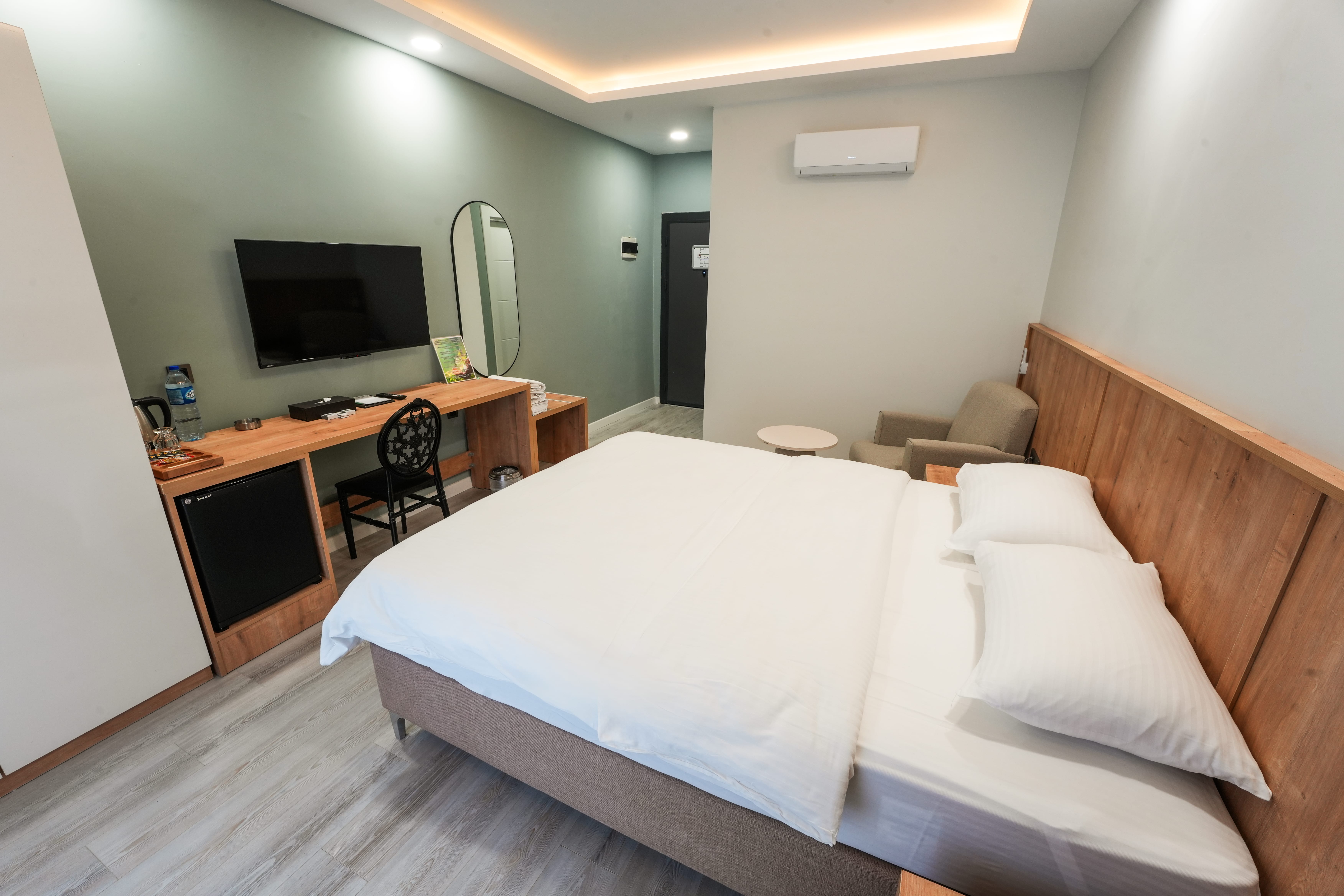 30 m²30 m² büyüklüğündeki Standart Geniş Yataklı Odamız, konfor ve sadeliği bir araya getiren huzurlu bir konaklama deneyimi sunar. İhtiyaç duyduğunuz tüm detaylar, keyifli bir konaklama için özenle düşünülmüştür. Oda Özellikleri: