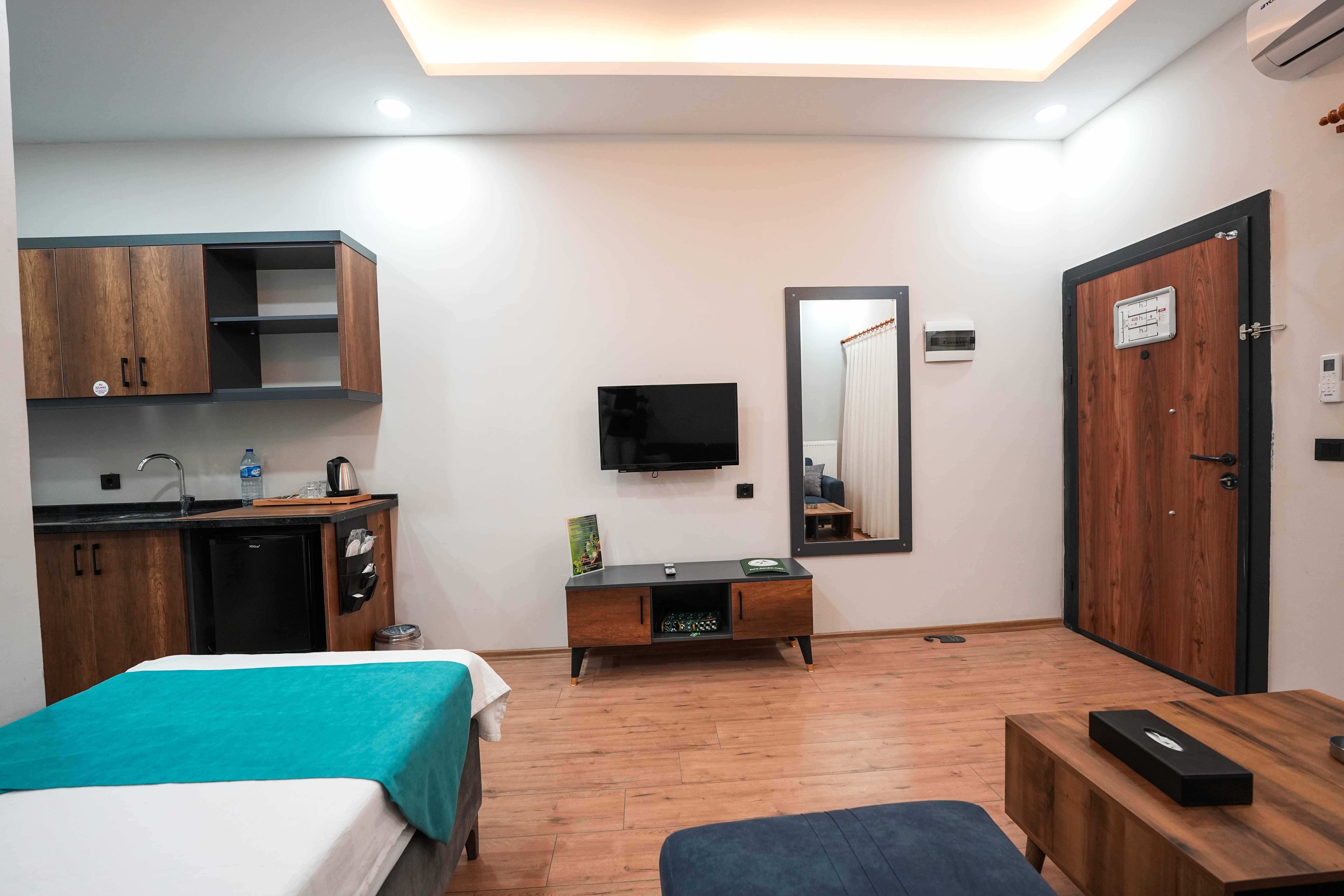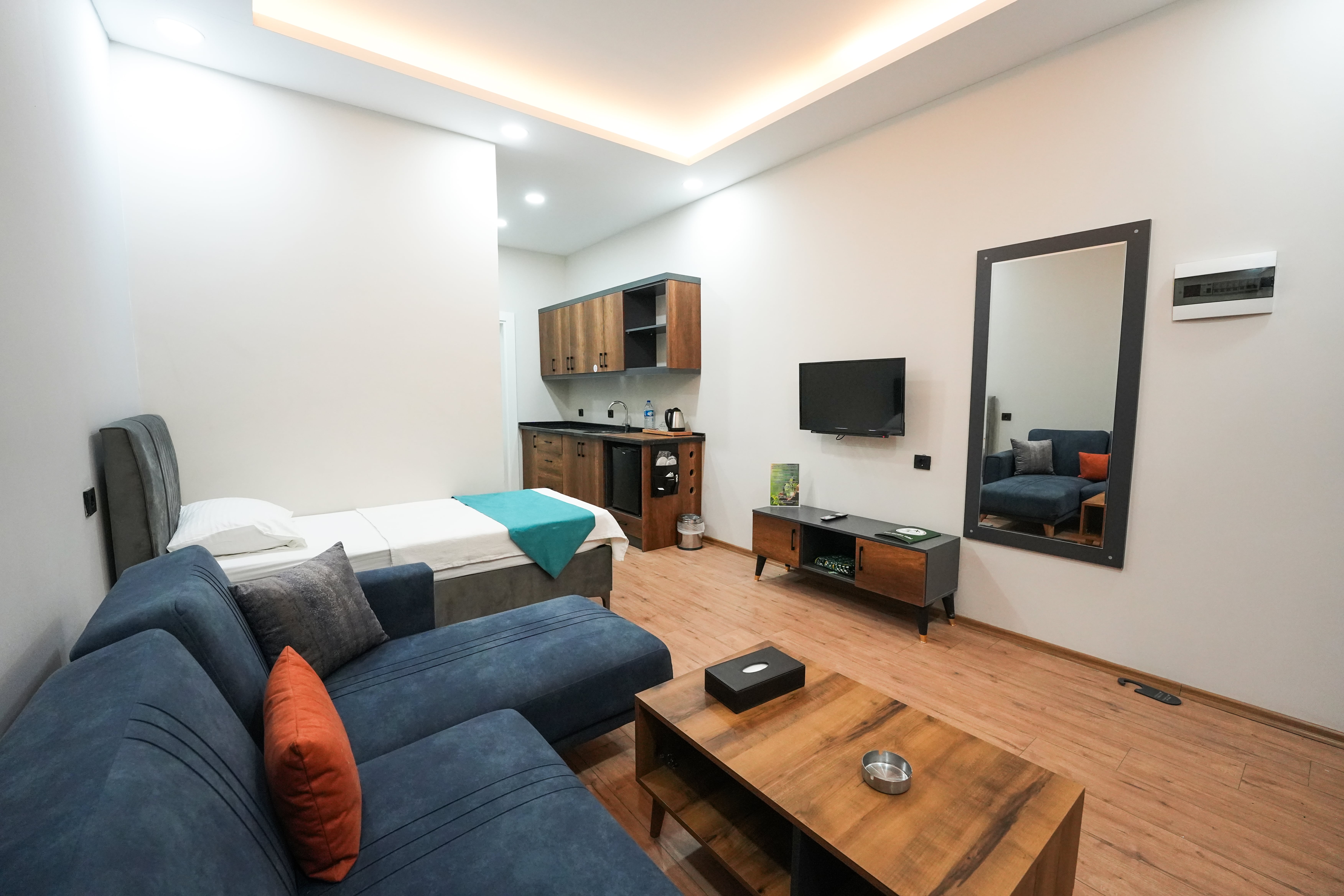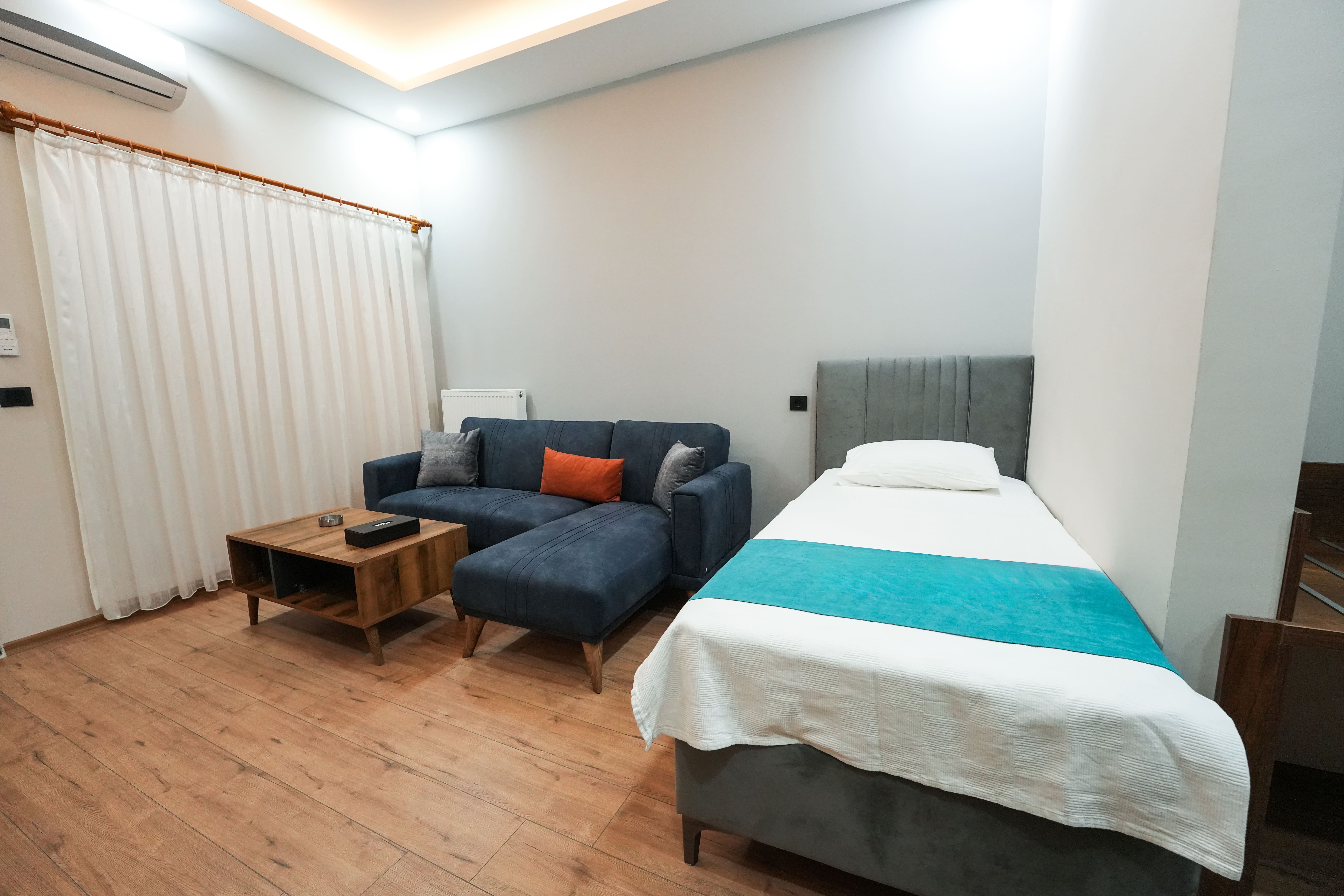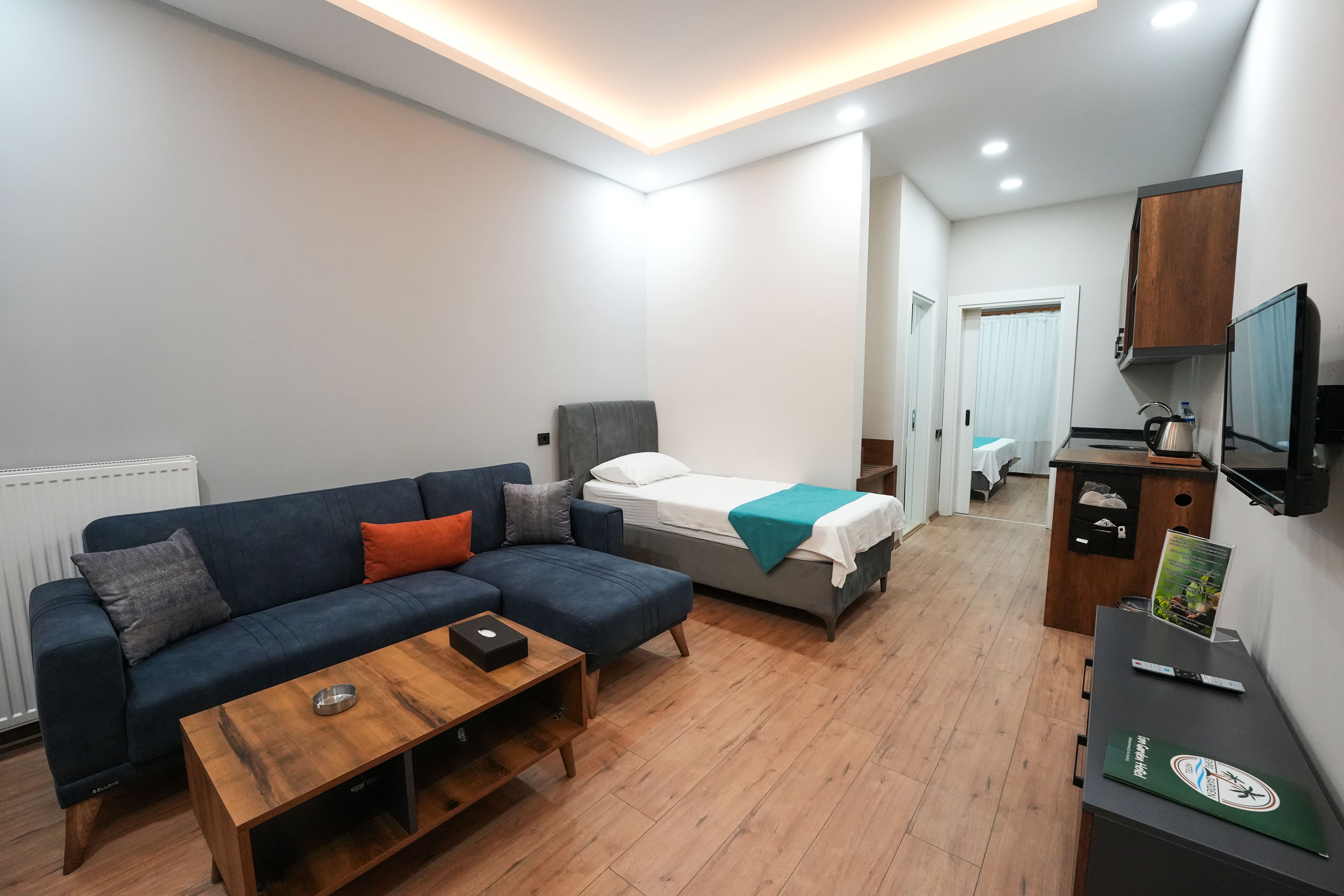38 m²38 m² büyüklüğündeki Triple Oda, 1+1 planıyla oturma ve yatak alanlarını bir arada sunar.
